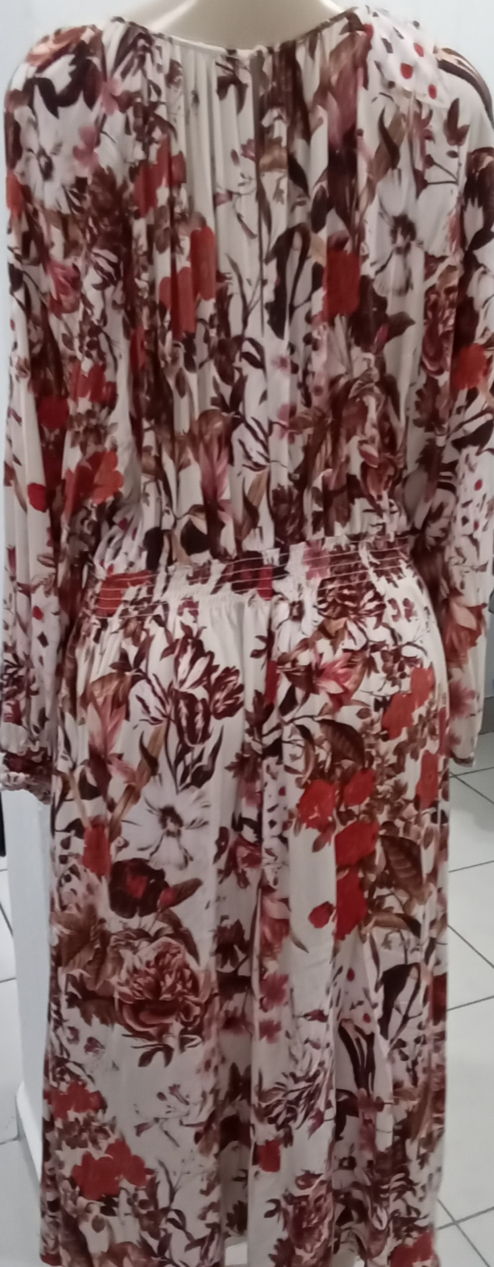 Vestido largo con elastico en las mangas y cintura talla XL tela fresca