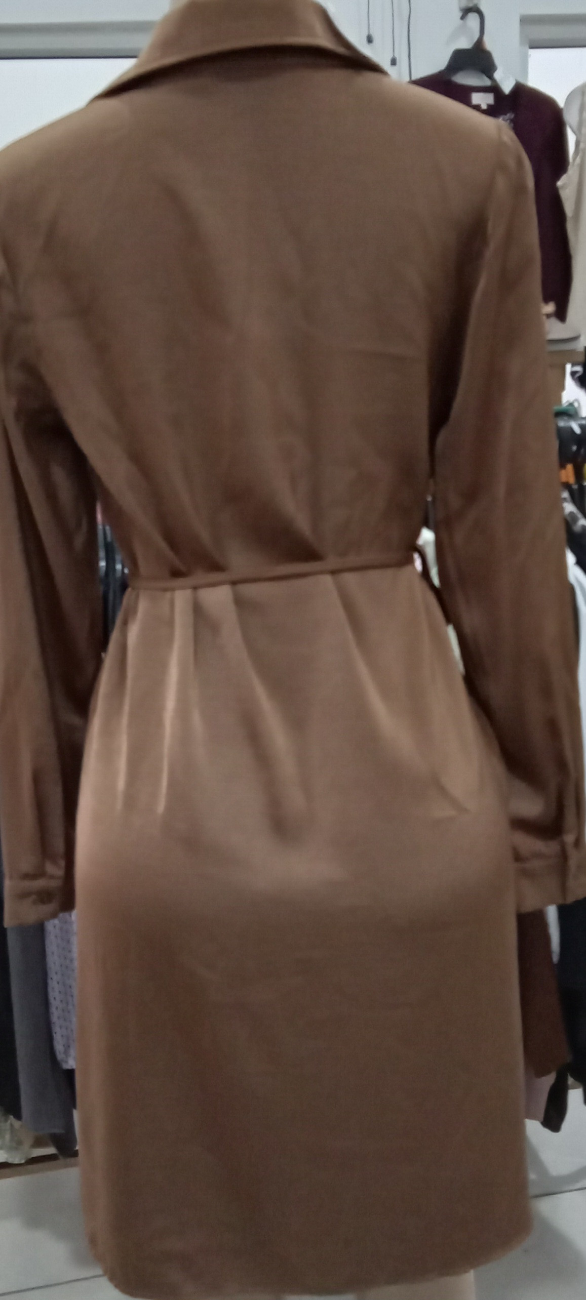 Vestido color Cafe Manga larga talla S polyester