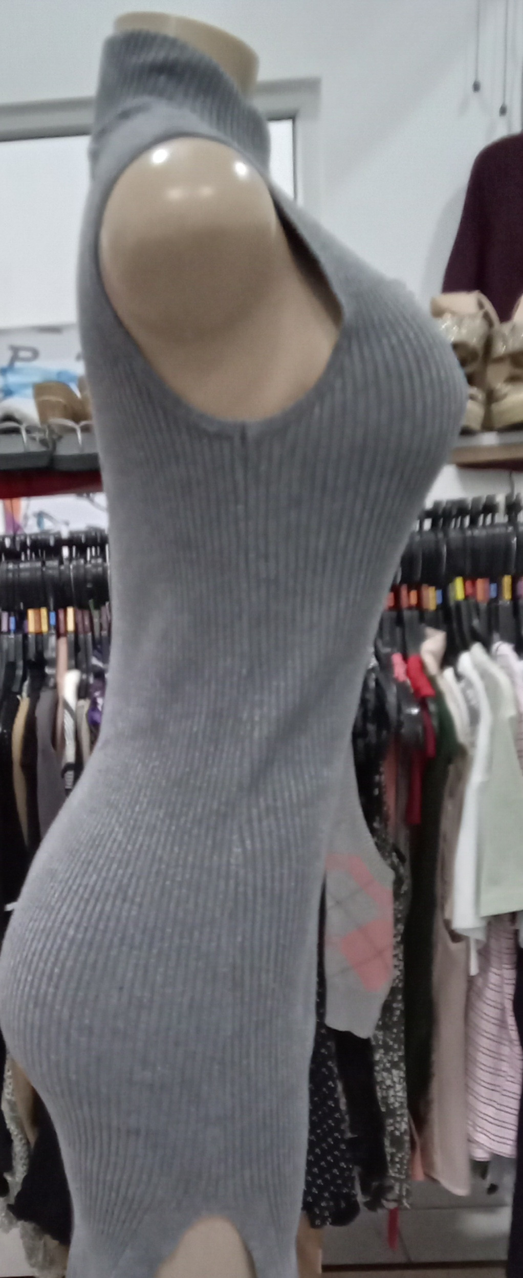 Vestido stretch color gris sin mangas talla M usado